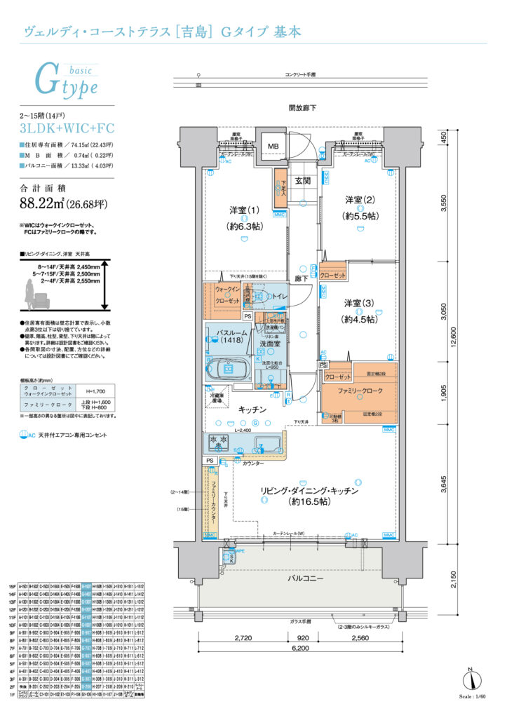 Gタイプ 3LDK 専有面積74.15㎡’(22.43坪) 階数2階/15階