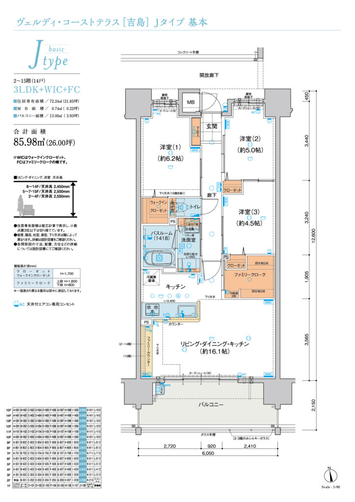 Jタイプ 3LDK 専有面積72.24㎡’(21.85坪) 階数2階/15階