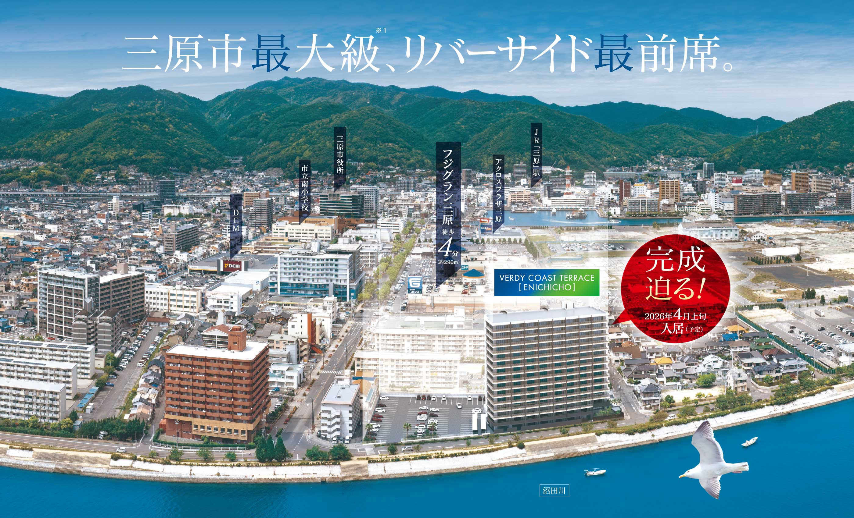 尾道、好適地。 尾道市栗原東に、新たなライフステージが誕生。日々の暮らしを支えるスーパーマーケットやドラッグストアが至近。通勤・通学や移動の可能性を広げるJR「尾道」駅も徒歩圏。それでいて、閑静で落ち着いた住環境。ここはまさに、住むに適した地。“ヴェルディ・ザ・テラス[尾道]”、ここで紡ぎたい、ここにしかない人生がある。 ヴェルディマンションシリーズ尾道市第5弾 2009年竣工の「ヴェルディ東尾道」を皮切りに、これまで尾道市内で4棟・164戸を供給。そして2025年、いよいよ第5弾が登場。
